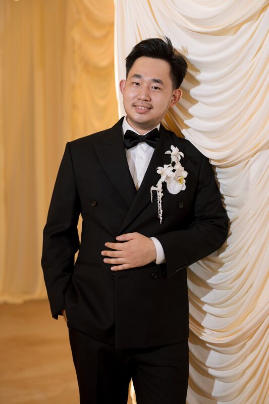 On the most important day of his life, groom Eric Au chose two bespoke suits to accompany him throughout the wedding.