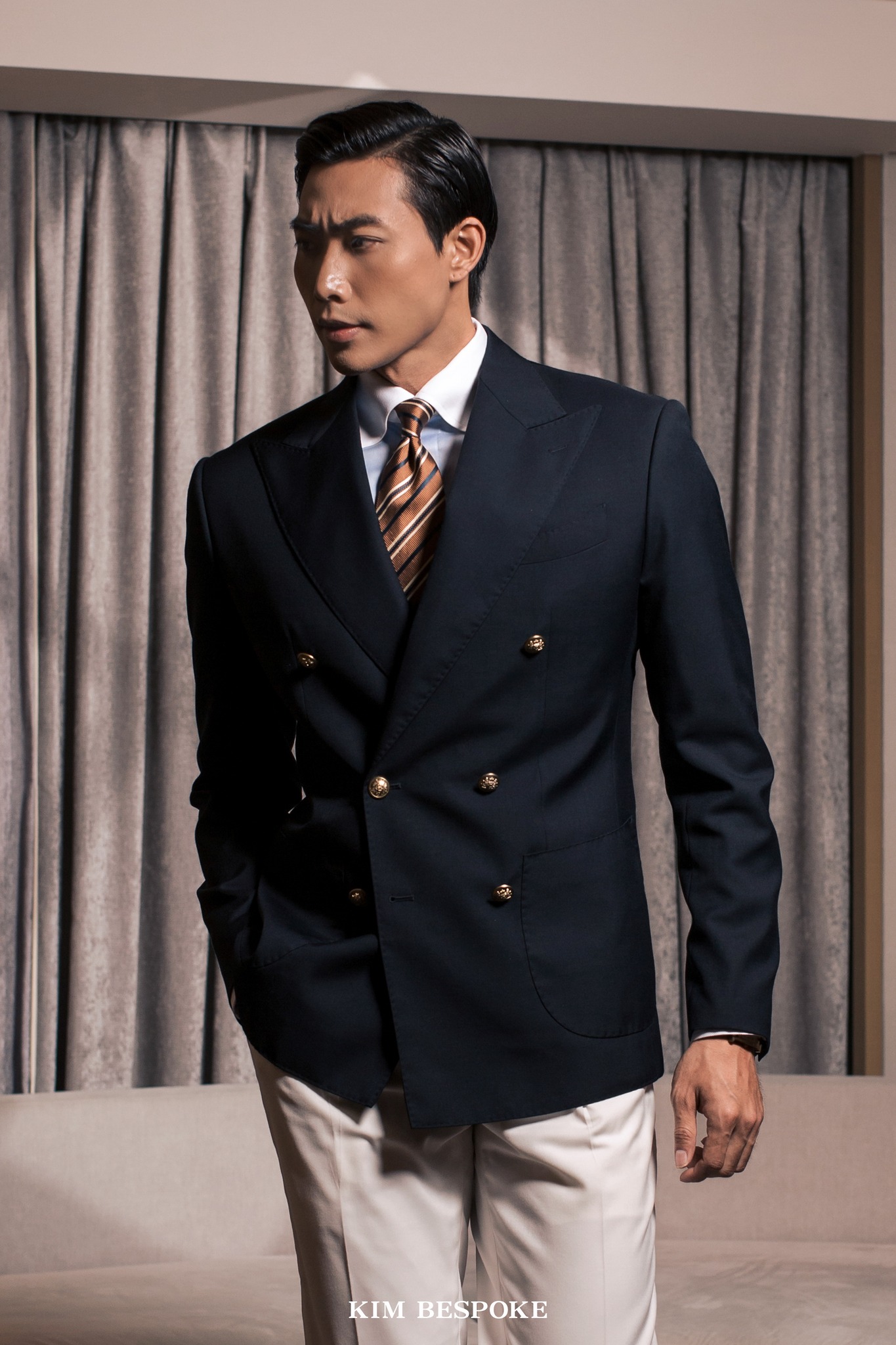 KIM is a blazer inspired by the Kim Bespoke brand itself, where the signature dark navy serves as the foundation of the overall design. Color research shows that over 70% of Kim Bespoke clients favor this shade, making it both classic and highly appealing.