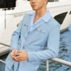 Beyond the universally loved light gray shade that suits every style, Kim Bespoke subtly incorporates sharp peak lapels and a double-breasted silhouette, creating a more formal and streamlined appearance. The standout aesthetic feature of the Beige Summer Breeze Suit also lies in the meticulously tailored rounded barchetta pockets—a hallmark of classic Neapolitan tailoring—earning the admiration of fashion lovers who appreciate understated elegance with a touch of luxury.