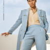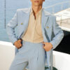 Instead of following the earthy tones typical of traditional safari suits, Kim Bespoke brings a refreshing, energetic twist with a gentle and vibrant pale blue. The durability of the wool-blend fabric—featuring wrinkle resistance and excellent shape retention—pairs perfectly with meticulously crafted details such as patch pockets and a tailored waist belt. These elements help the jacket contour naturally to the body, creating a neat, effortless silhouette that remains strong and masculine.