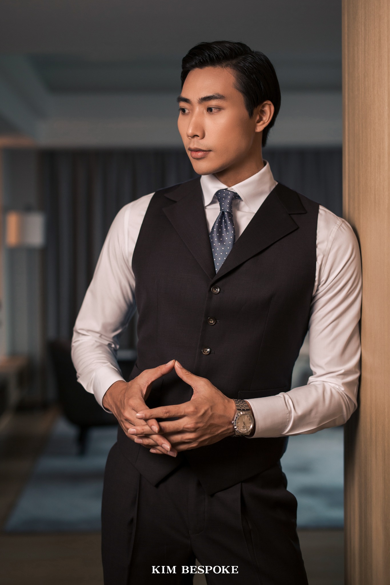 The Chocolate three-piece suit exudes both allure and sophistication. From a distance, it appears nearly black, but up close, its rich brown tones reveal themselves — much like the taste of dark chocolate: initially bitter, yet leaving a captivating, lingering sweetness. This hue is more than a fashion choice; it symbolizes the persona of a gentleman who is composed and resolute on the surface, yet charming and witty for the woman he adores.